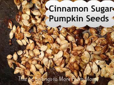 Because I am always a frugal cook after we cut open our pumpkins I always cook the seeds. Eating them has become a family tradition. This year I made some yummy cinnamon sugar pumpkin seeds. It was so easy to do. Here’s the steps.